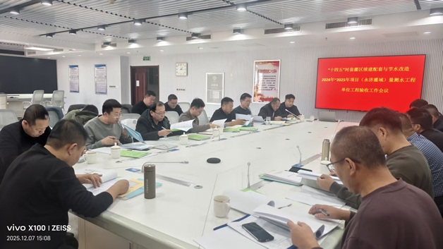 在验收会议上,各参建单位分别就工程建设情况进行了详细汇报。现场建管组汇报了工程实施以来的建设管理情况;施工单位介绍了施工过程、质量控制措施及完成工程量;设计单位重点说明了设计服务工作;监理单位汇报了监理工作开展情况,并对工程质量进行了客观评价。验收工作组特别针对分部验收中发现的问题对参建各方的整改情况作出检查。“十四五”河套灌区续建配套与现代化改造2024年~2025年项目(永济灌域)量测水工程单位工程验收组经过讨论,一致同意通过验收。