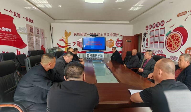 为扎实推进复兴灌域2026年春夏灌工作,全面保障灌区农业生产用水需求,3月24日,复兴渠供水所召开2026年春夏灌工作部署会。会议由复兴渠供水所所长赵利军主持,天吉泰镇人大主席张立君、二级主任科员徐英海、数名灌户代表参加会议。