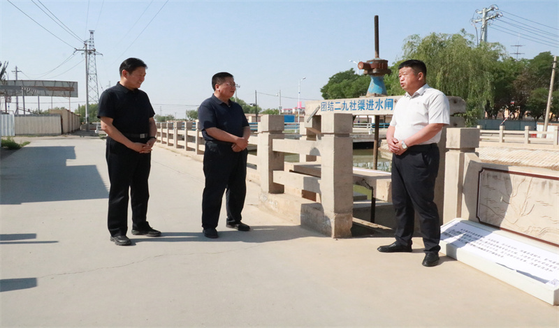 5月27日,河灌中心党组书记张广明带领组织人事处负责人一行到解放闸灌域,调研指导党建、党风廉政建设、水费计收、组织人事和供排水管理等重点工作。解放闸分中心党委书记、主任何军陪同调研。