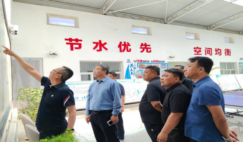 5月28日,甘肃省工商业联合会主席、总商会会长郭奇志一行赴内蒙古河套灌区水利发展中心考察调研水利科技工作。河灌中心党组副书记陶奋山、科技服务处处长韩文光、副处长魏杰等相关技术人员陪同调研。