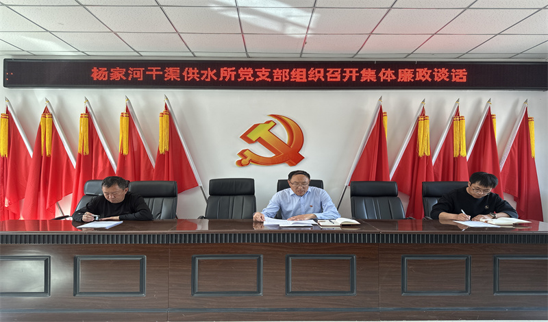 近日,为深入推进全面从严治党,绷紧干部职工廉洁自律之弦,切实筑牢春灌关键时期的廉政防线,杨家河干渠供水所组织全体干部职工开展集体廉政谈话。供水所党支部书记、所长黄银强主持会议并作重要讲话,对全体干部职工提出廉政工作要求与纪律准则,为春灌工作有序开展保驾护航。