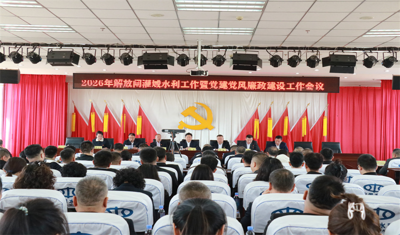 4月1日,2026年解放闸灌域水利工作暨党建党风廉政建设工作会议顺利召开。会议全面回顾了上年度及“十四五”时期工作成绩,深刻剖析了当前灌域发展面临的机遇与形势,明确了全年及”十五五“时期工作方向,为推动高质量发展奠定了坚实基础。