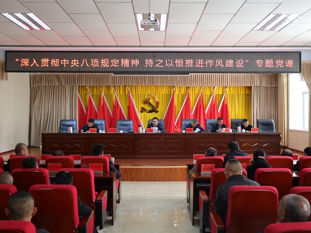 近日,乌兰布和分中心党委书记、主任张浩文同志组织开展了一次以“深入落实中央八项规定精神,持之以恒推进作风建设”为主题的专题党课,分中心机关及各所站在职党员共93人参加会议。