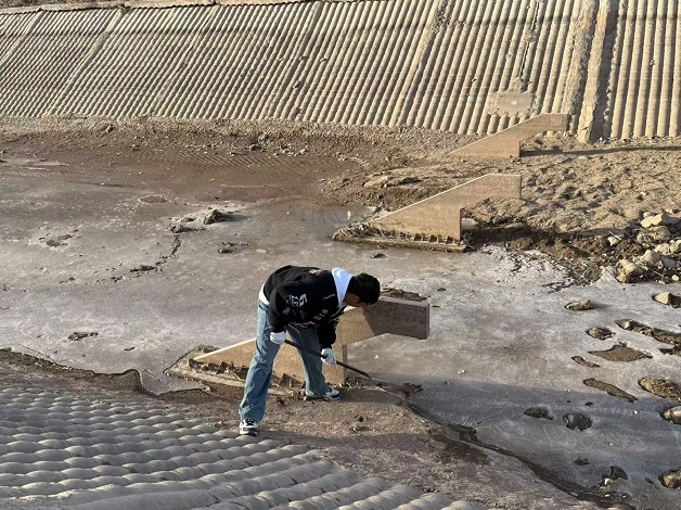 “测流基础的平整度和密封性是关键,哪怕一点小冰碴残留都可能留下隐患。”杨江副所长一边除冰、一边向年轻职工讲解维护要点。干部职工们严格按照操作规程,对每一处基础结构反复清理、细致检查,确保积冰彻底清除、基础完好无损。经过一下午的连续奋战,大滩分干渠自动测流基础冰去除维护工作全部完成。