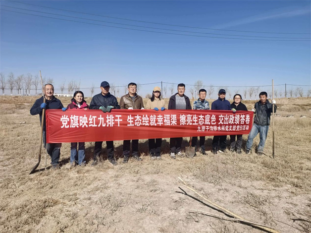 3月31日,乌拉特分中心九排干沟排水所党支部组织党员干部职工开展 “党旗映红九排干 生态绘就幸福渠 擦亮生态底色交出优异答卷”志愿服务活动,充分发挥党员先锋模范作用,扎实推进沟道环境整治与标准化生态所站提升工作。