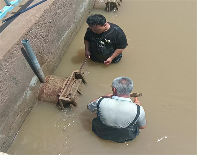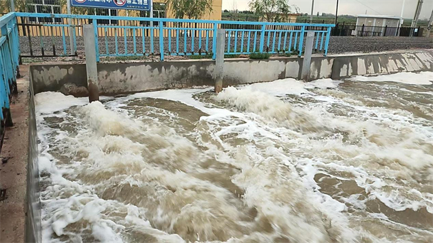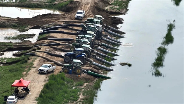 但各排水所泵站建设于上世纪70年代,主要服务于日常农田排水,针对山洪排涝方面的设计冗余不足,难以有效控制持续上涨的水位,水位峰值最高达到1018.60毫米,防汛形势依然严峻。针对该情况,排水所全体干部职工争分夺秒轮岗上阵,机泵设施昼夜轰鸣不息;市旗两级政府及相关单位及时调运数台拖拉机带轴流泵和排涝泵车投入作业,并在通济渠退水渠架设水泵集群,优化排涝布局,抽水效率大幅提升,有效缓解了当前的高水位压力。
