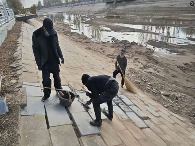 此次岁修重点涵盖四大核心任务。一是全力推进头闸上清淤工作,针对永兰分干进水闸前长期运行沉积的泥沙、杂物,采用机械挖掘与人工清理相结合方式彻底进行清淤,恢复渠道过水断面,保障进水通畅。二是扎实开展城区段衬砌板维修,对破损、松动的衬砌板块进行拆除更换与加固修复,重点整治塌坡、冻胀、裂缝等问题,恢复渠体结构稳定性,保证城区段渠道整体整洁美观。三是全面检修启闭机械设备,对全线闸门、启闭机、丝杠等关键部件进行除锈防腐、润滑保养与调试校准,消除机械卡顿、运转异常等隐患。四是集中进行“清四乱”整理,利用机械重点对城区永济公园段、头闸上继光村段渠底垃圾进行清理,同时发动全体职工对干渠全线渠堤、渠坡杂草、枯枝进行全面清除,改善渠道沿线环境面貌。
