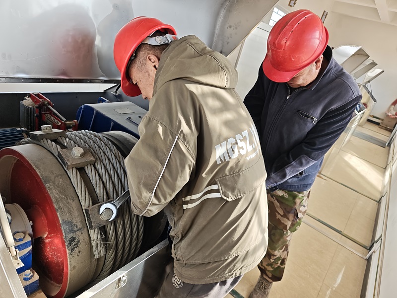 检修严格遵循水利工程检修规程和安全操作规范,分工明确、协作高效,有序推进各项检修任务。针对闸门关键运行部件,工作人员重点检查闸门钢丝绳,逐一排查断丝、锈蚀、磨损等隐患,对轻微问题及时处置,并细致涂抹黄油形成防护层,防范水下环境导致的锈蚀磨损,保障钢丝绳牵引灵活、受力均匀,确保闸门升降顺畅。同时,全面检测启闭机的电机、变速箱等核心部件,查看运行声音、温度是否正常,加注专用机油做好润滑,减少部件损耗,保障设备运转平稳、响应迅速。此外,工作人员逐一紧固松动的螺丝及连接件,彻底消除运行隐患。同步清扫整理闸机房,清理杂物、擦拭设备、规范摆放工具物资,营造整洁安全的运行环境,为设备稳定运行提供有力保障。